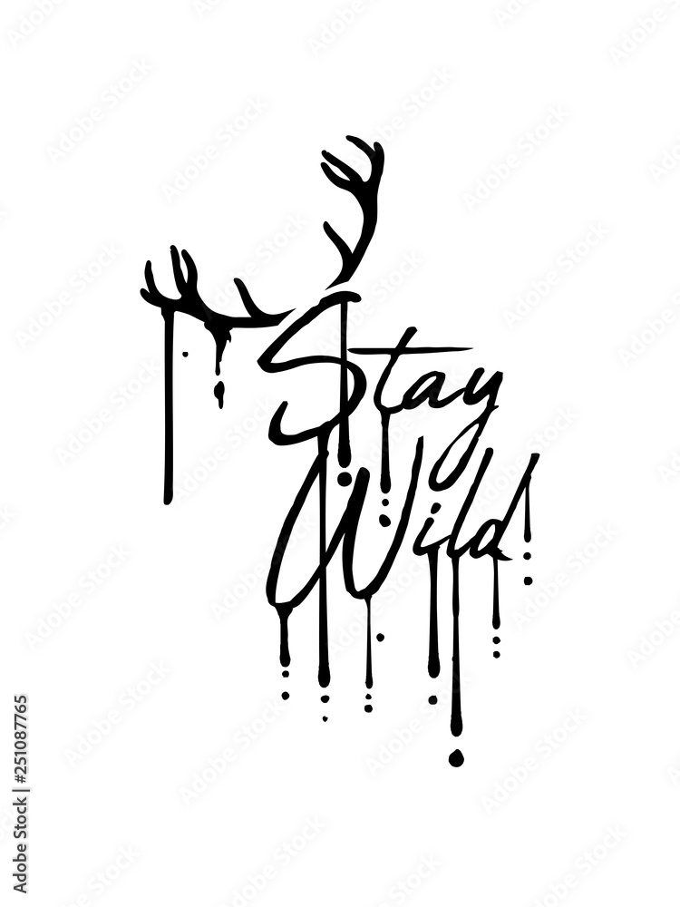 Graffiti Tropfen Hirsch Geweih Wildnis Design Stay Wild Text Logo Cool Animalisch Verrueckt Bleib Crazy Freiheit Unabhaengig Selbststaendig Allein Stuermisch Impulsiv Ungezaehmt Baendigen Stock Illustration Adobe Stock